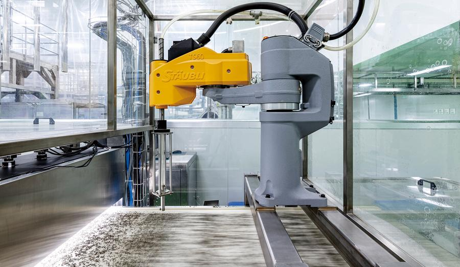 This photo taken on April 15, 2020 shows an AI robot removing impurities on a production line at a tea company in Huangshan City, east China's Anhui Province. (Xinhua)