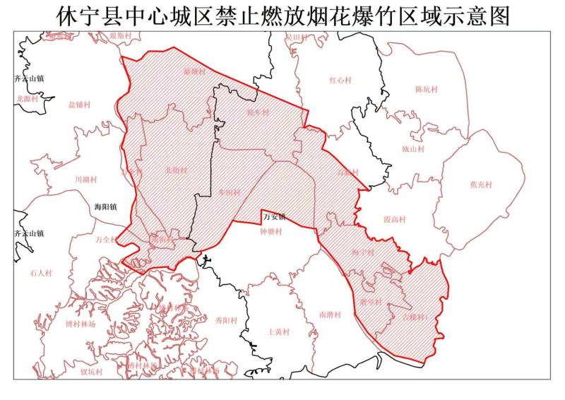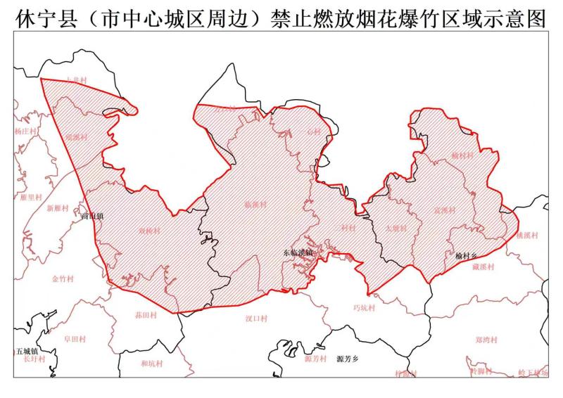 1、禁放范围调整。原《规定》明确(一)休宁县皖赣铁路以南,横江以北,夹溪河以东延伸至与屯溪区接壤的合围区域内;(二)休宁经济开发区(怀玉板块除外);(三)休宁县东临溪镇徽杭高速公路以北区域内;(四)新安养生谷居民区为禁放区域,禁放范围调整后为(一)北至海阳镇新塘村音干组、舟山组、上竭组,西至夹溪河,南至休宁县经济开发区怀玉板块、海阳镇秀阳村下汶溪组,东与屯溪区接壤的范围内;(二)西至京台高速,南至商山镇双桥村、东临溪镇临溪村和榆村乡富溪村,东至榆村乡桃溪村,北与屯溪区接壤的范围内。(具体见附图)