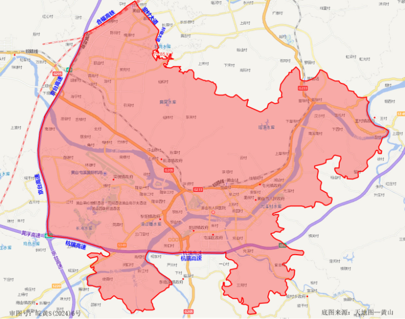 黄山市屯溪区及周边禁止燃放烟花爆竹区域示意图