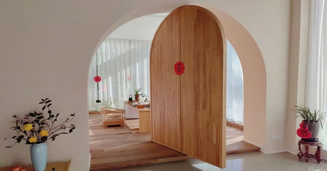 一进门就是一个拱形的书柜,书籍是民宿主静语自九十年代初开始收集的私家珍藏。