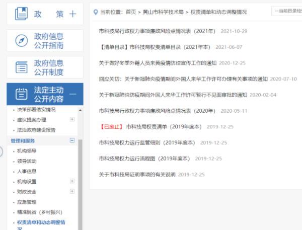 图4-4市科技局权责清单与动态调整栏目