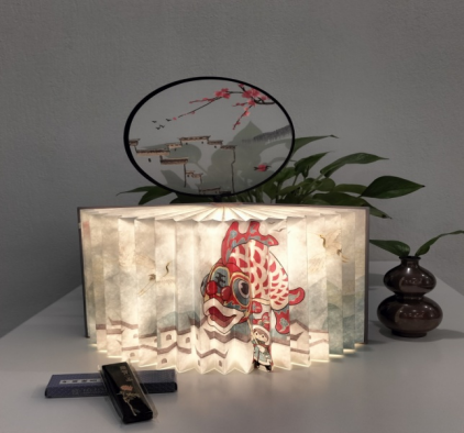 许国石坊纸雕灯是结合非遗项目徽州剪纸工艺研发设计的文创产品,采用USB接口充电,打开时可作为台灯使用,合起来是一本创意书籍,造型别致,既是书灯又是摆件,深受顾客的青睐。 | |