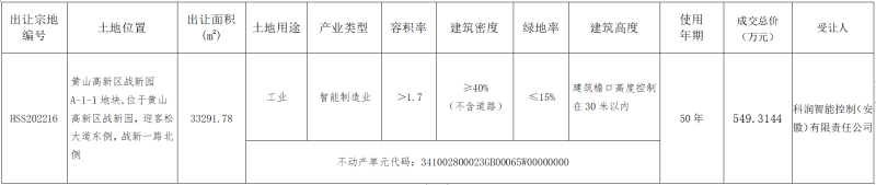 黄山市中心城区国有建设用地使用权挂牌成交结果公示