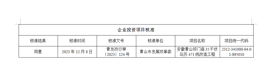 黄山市发展改革委关于安徽黄山祁门县35千伏乌历471线改造工程核准的批复