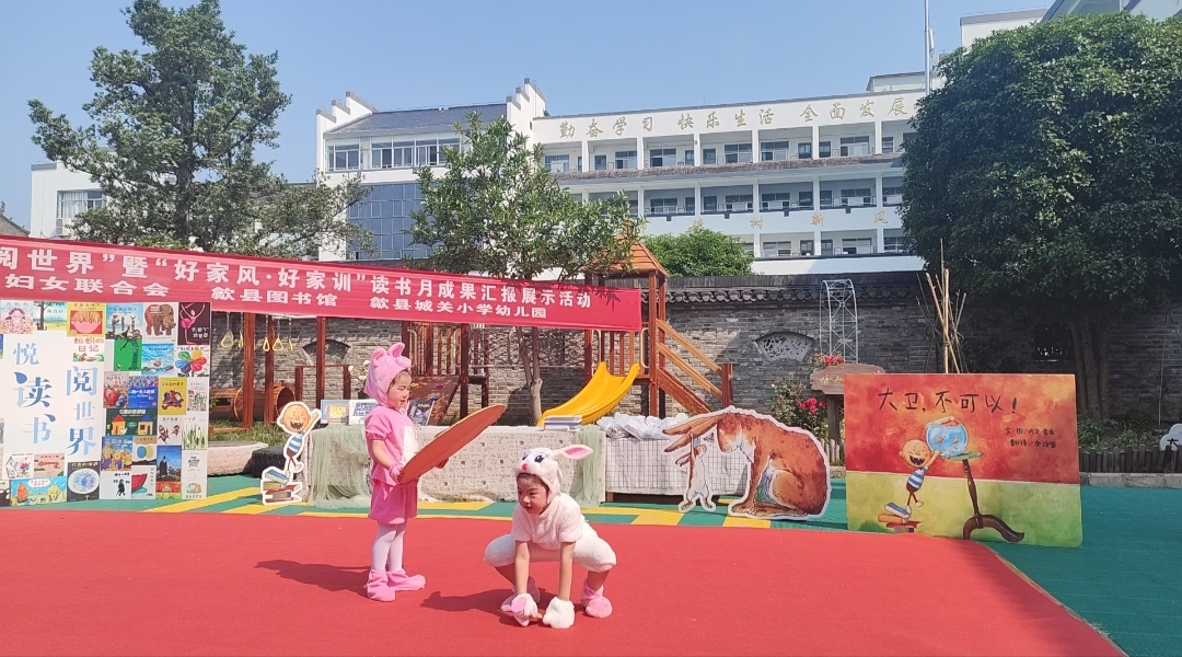 在成果展示现场,歙县城关小学副校长、县图书馆馆长、县妇联主任分别上台致辞,并对“读书月”活动中评选为“阅读之星”、“书香家庭”的学生、家长进行了颁奖。幼儿园的小朋友们还带来了《是谁咬了我的大饼》《孔融让梨》《小壁虎借尾巴》《大卫,不可以》等精彩节目以及亲子绘本讲演,展示了一个月以来的“读书”成果。