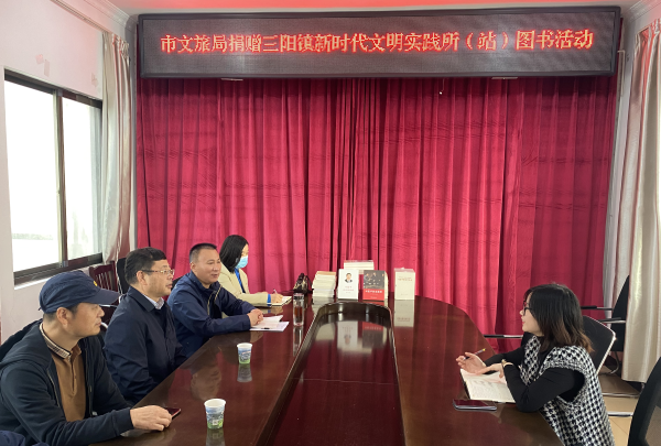 章隆念代表市文旅局向三阳镇新时代文明实践所(站)捐赠图书36册(套)。随后,调研组一行与三阳镇相关负责人进行深入座谈交流,听取了关于新时代文明实践中心建设工作汇报,实地察看了三阳镇新时代文明实践所(站)特色活动项目等情况,并提出指导建议。