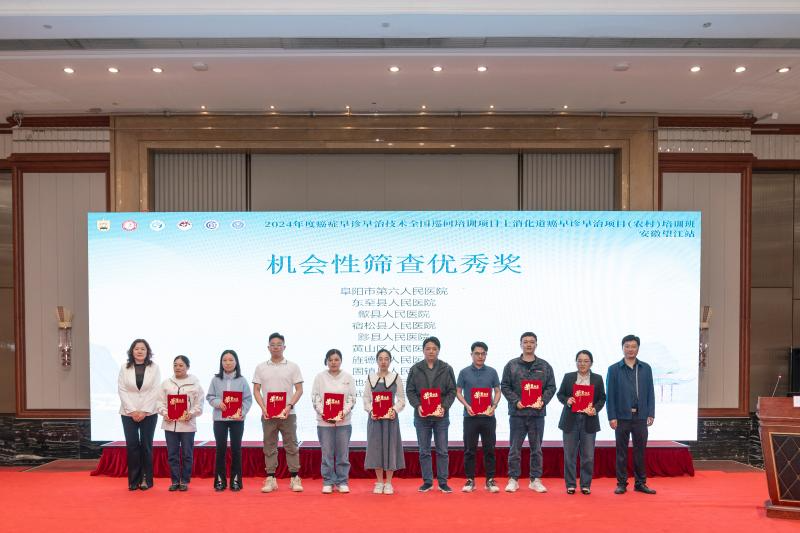为推进落实2024年度上消化道癌早诊早治项目(农村)工作,提高项目承担单位专业技术人员水平和业务能力,中国癌症基金会、癌症早诊早治项目(农村)专家委员会主办,皖、赣、滇三省卫生健康委及疾病预防控制中心协办了此次项目培训班。此次培训设置了技术方案考核、Answer-pad测试、项目工作线上汇报、内镜规范化操作考核、专题报告等竞赛和考核等项目,并涵盖督导交流与质控、早癌病例诊断与质控、内镜病理争锋赛、Answer-pad个人赛和团体赛等项目。培训班上对项目管理和工作表现优异的单位和个人分别进行了表彰和颁奖。