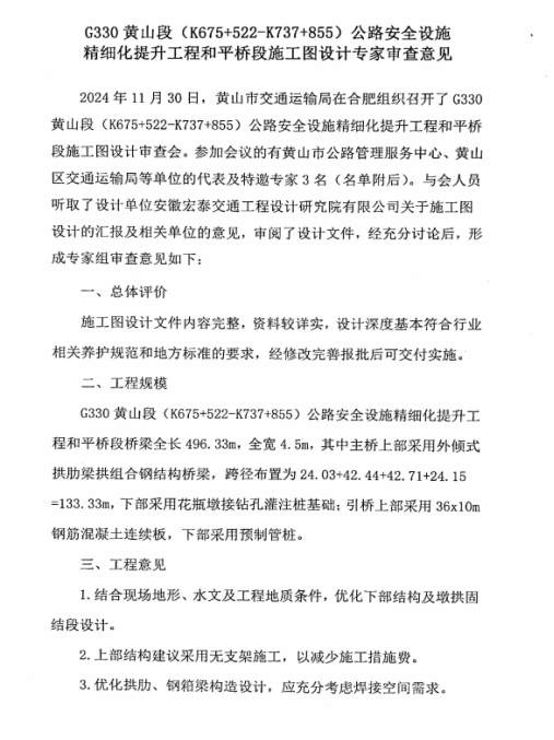 一、原则同意《G330黄山段(K675+522-K737+855)公路安全设施精细化提升工程》。