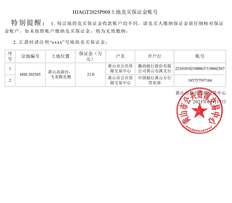 黄山市中心城区国有建设用地使用权挂牌出让公告(HSS202505地块)