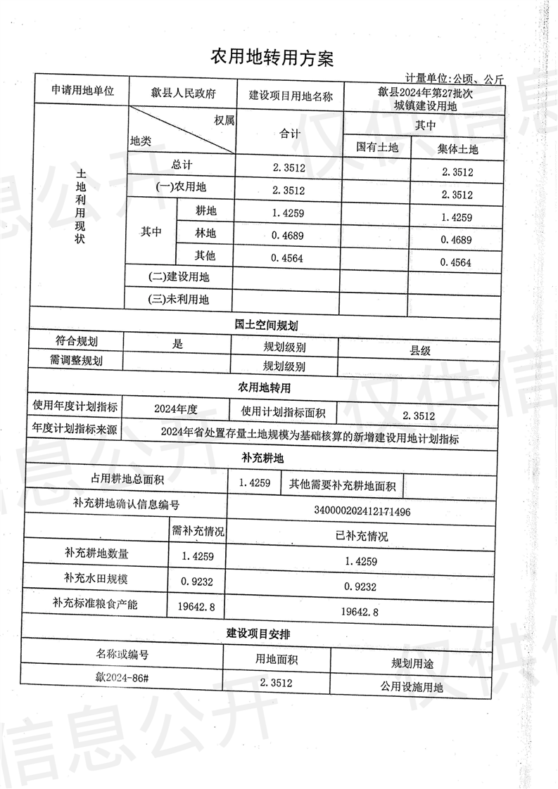 歙县2024年第27批次城镇建设用地农用地转用方案