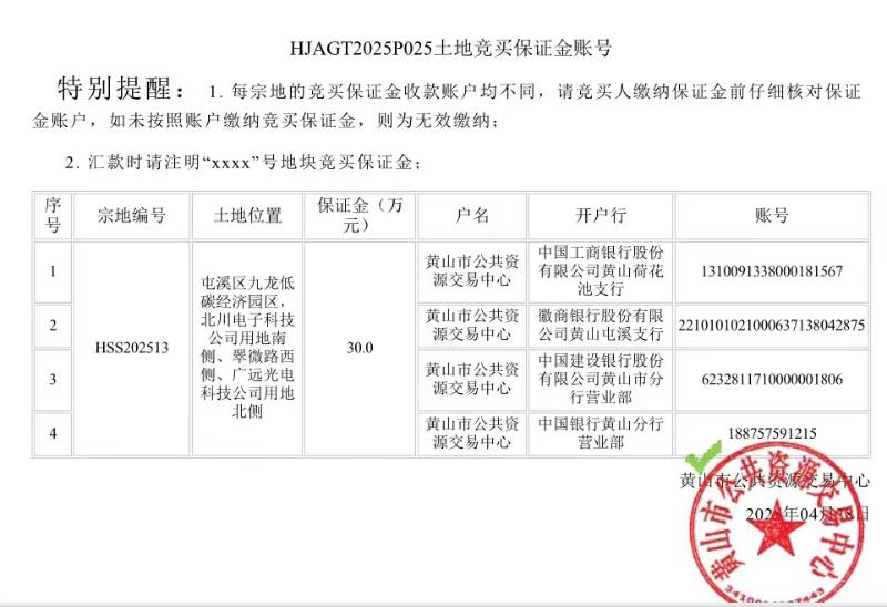 (四)竞买保证金到账的截止时间为2025年5月26日16时前,请竞买人尽早安排保证金转账工作,资金转出后及时将转账凭证上传系统,以便及时核实。