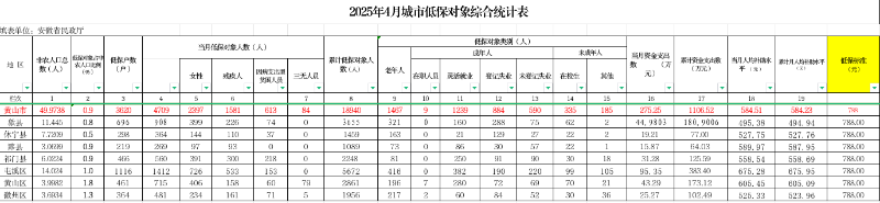 黄山市城市低保2025年4月统计表(分区县)