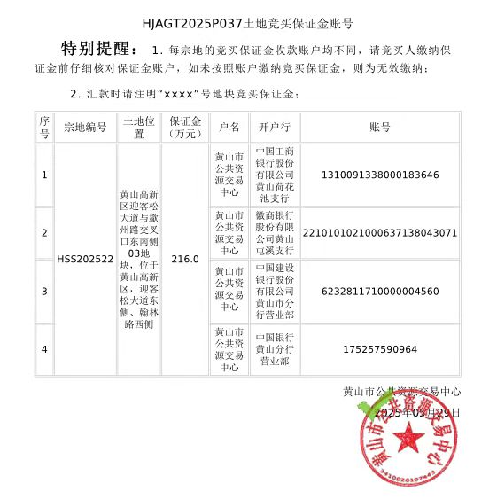 黄山市中心城区国有建设用地使用权挂牌出让公告(HSS202522地块)