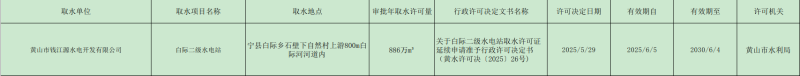 一、同意白际二级水电站取水许可证有效期延续至2030年6月4日。