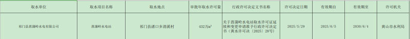 一、同意菖蒲岭水电站取水许可证有效期延续至2030年6月4日。