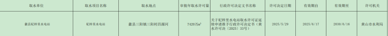 一、同意杞梓里水电站取水许可证有效期延续至2030年6月16日。