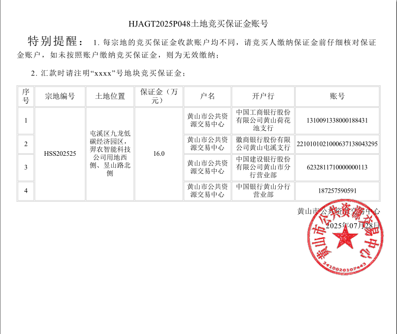 黄山市中心城区国有建设用地使用权挂牌出让公告(HSS202525地块)