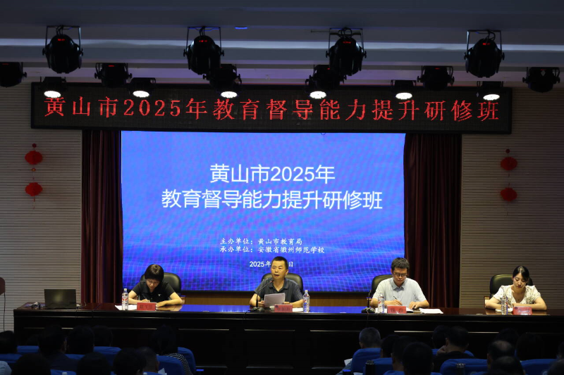 为认真落实新时代教育督导工作要求,进一步加强全市责任督学队伍建设,提升督学专业素养和履职能力,助力教育强市建设,8月5日,黄山市教育局举办2025年教育督导能力提升研修班。市教育局四级调研员张朝阳同志出席开班仪式并讲话,各区县教育局分管领导、督导室负责人,市教育局督导室全体同志,全市专兼职责任督学共计100余人参加培训。