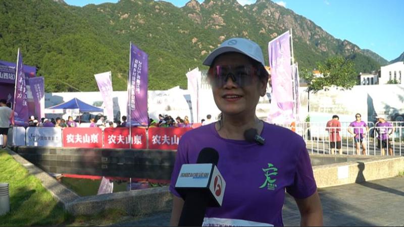参赛选手 周玉美:我们几个人是从南京过来的,我们报了10公里的健康跑,这边的风景非常优美,我们一大早就出来了,这边的人非常热情,报名的人也很多,我希望这次比赛能拿个好名次,顺便看看一路的风景。