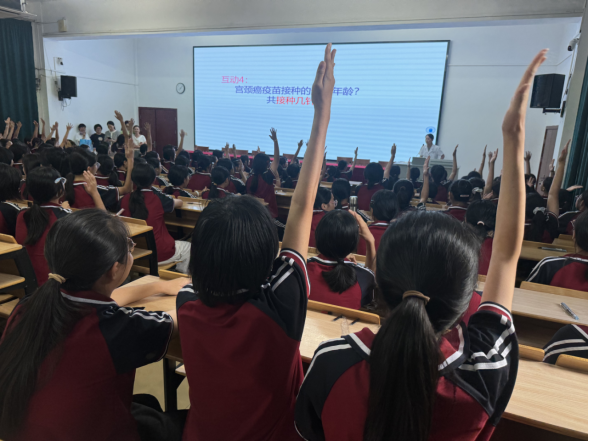 现场特别安排了有奖问答环节,同学们一改平日课堂上的拘谨,纷纷踊跃举手抢答,更有不少同学主动提出追问。此次活动不仅有效填补了学生群体在宫颈癌防治知识方面的空白,同时也助力老师们进一步掌握HPV疫苗的科学信息。