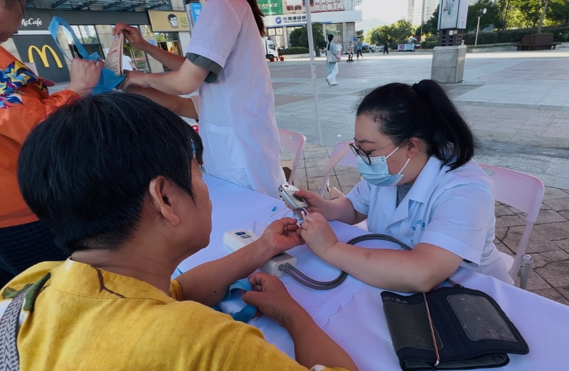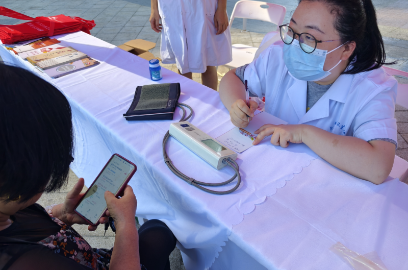 现场设立健康知识宣传台、血压血糖测量台、现场居民建档台等,为群众开展健康知识宣传、血压测量、血糖检测等健康服务,积极宣传国家基本公共卫生服务项目,重点讲解老年人健康管理、高血压、糖尿病健康管理等内容,引导广大群众更加关注自身健康,让居民切实感受到“家门口”的便捷医疗服务。