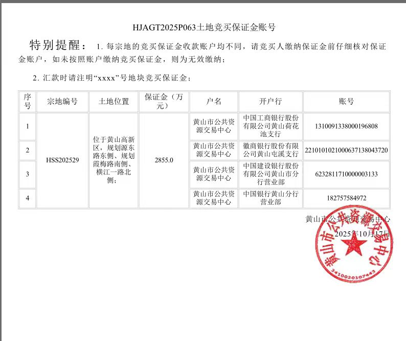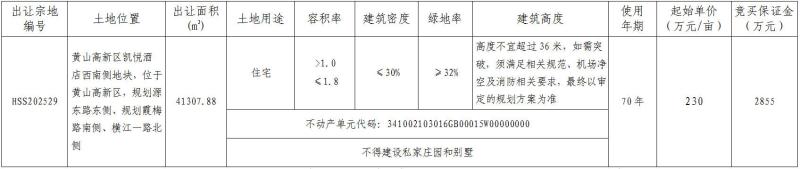 黄山市中心城区国有建设用地使用权挂牌出让公告(HSS202529地块)