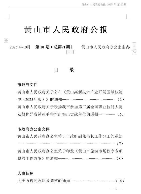 黄山市人民政府公报2025年第10期(总第91期)
