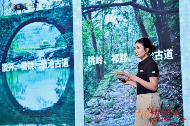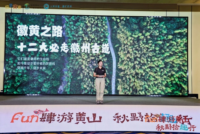 活动现场,黄山徽黄之路户外运动有限公司代表黄山区作古道徒步主题推介,诚邀大家,跟随“徽黄之路”,一起用脚步丈量历史,用心灵感知自然,在古道的悠然时光中,收获健康,涤荡心灵,邂逅不一样的黄山。