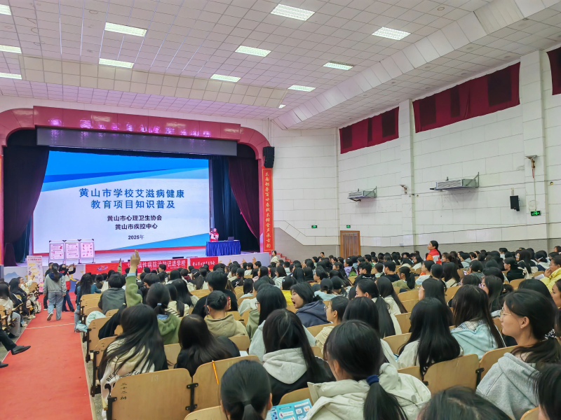 为深化青少年艾滋病综合防治工作,构筑校园健康防线,2025年11月3日晚,黄山市疾控中心联合歙县疾控中心,共同指导黄山市联合心卫生理协会,于徽州师范学校大礼堂成功举办“携手防‘艾’,守护青春”专题讲座。此次活动是落实艾滋病防治宣传教育“五进”要求的具体举措,旨在将精准、科学的防艾知识送入校园。本次活动吸引了约600余名师生踊跃参与。