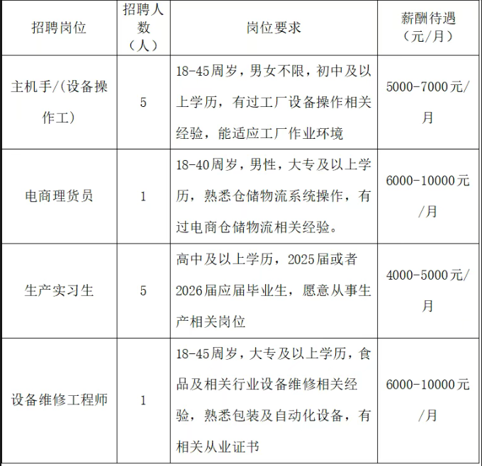 因业务发展需要,现招聘以下岗位: