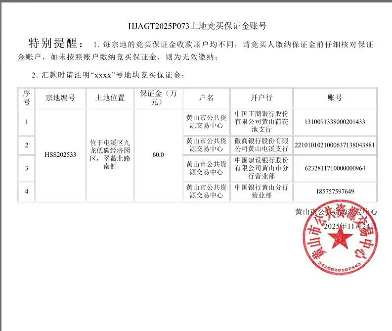 黄山市中心城区国有建设用地使用权挂牌出让公告(HSS202533地块)