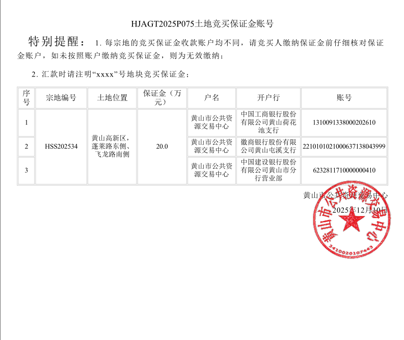 黄山市中心城区国有建设用地使用权挂牌出让公告(HSS202534地块)