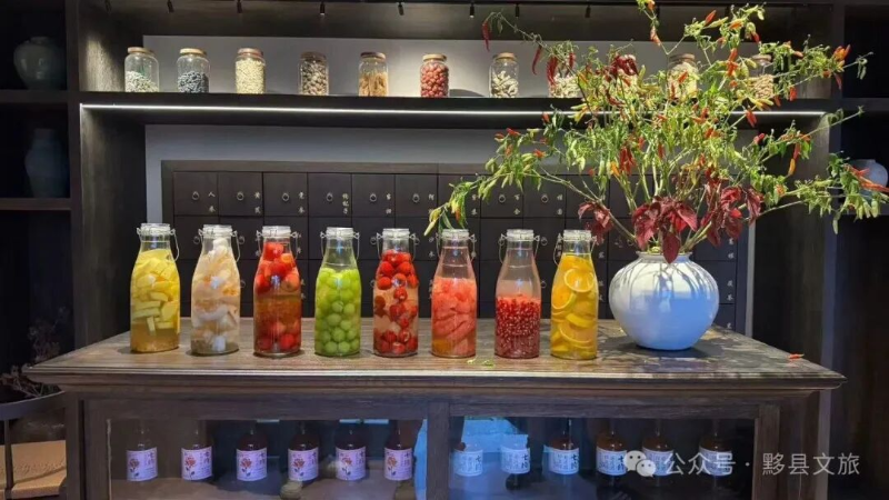 若要带走这份徽州诗意,不妨到无名初民宿的风物小铺看看。晒足日光的苹果干,咬开是阳光酿成的甜香;浸着山风的西梅果脯,酸甜里裹着自然的本味;还有坛中封存的自酿佳酿,每一口都是时光慢煮的余韵。把山野的馈赠打包,让徽州的诗意常伴身旁。