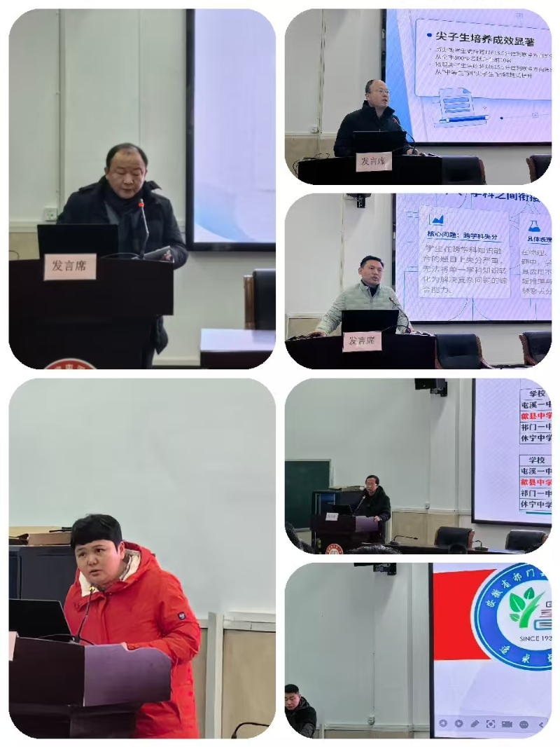 在学校交流发言环节,屯溪一中、歙县中学、休宁中学、祁门一中、徽州一中、歙州学校6所学校代表依次上台,结合本校高三一模考试情况作交流分享。各代表重点汇报了本校在此次一模中取得的成绩、发现的问题,以及后续复习备考的创新做法和具体计划,既有对前期工作的总结反思,也有对未来备考的明确规划,干货满满、各具特色,为全市各高中学校相互借鉴、共同进步提供了宝贵经验。