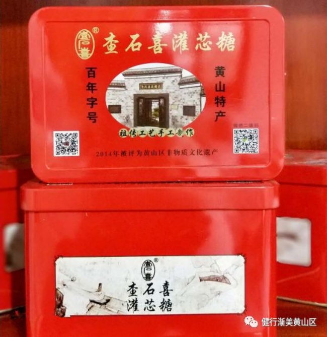 如今,寻常百姓家的年轻人已经很少有人会这做糖的手艺了,但在黄山区新丰乡就有这么一家查氏灌芯糖厂,用糯米、麦芽、芝麻、黄豆、花生、橘饼,白糖等为原料,发酵制作而成的传统手工食品,其色白、皮薄、馅香、心匀、食不黏齿、口感细腻、味正鲜美,堪称一绝。加上心馅种类多,口味独特,深受当地群众及游客们的喜爱。