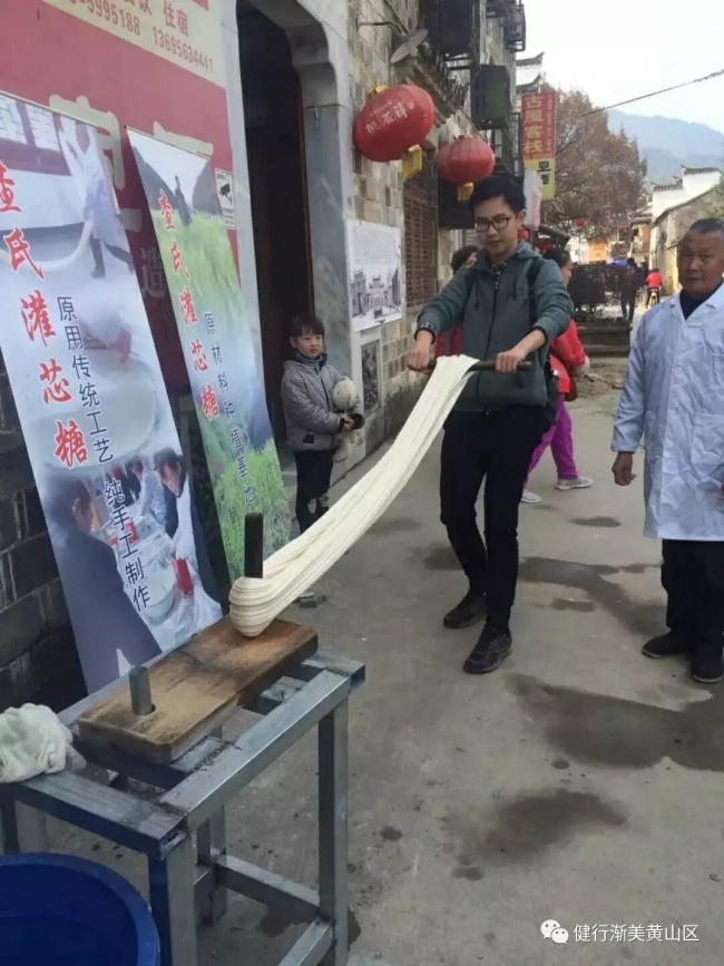 在黄山查氏泰昌糖业这里,我们不仅可以参观徽派厂房,还可以亲自体验拉糖工艺,或者还可以坐于庭院中品尝灌芯糖,欣赏园林景观。如果你也很怀念小时候的味道,惦记着这份纯手工的香、甜、脆,不妨到黄山区新丰乡来一次美丽乡村之旅,体验非遗传承,品尝甜蜜滋味,采购年货产品!