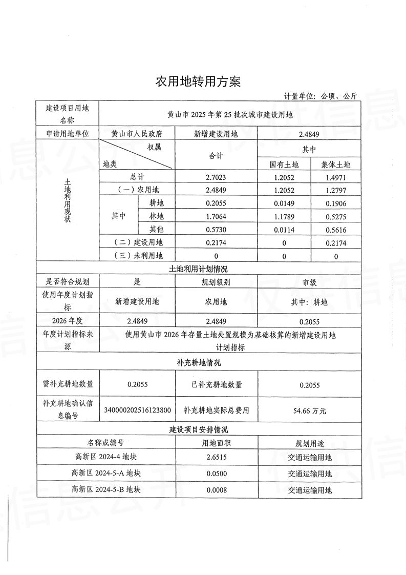 黄山市2025年第25批次城市建设用地农用地转用方案