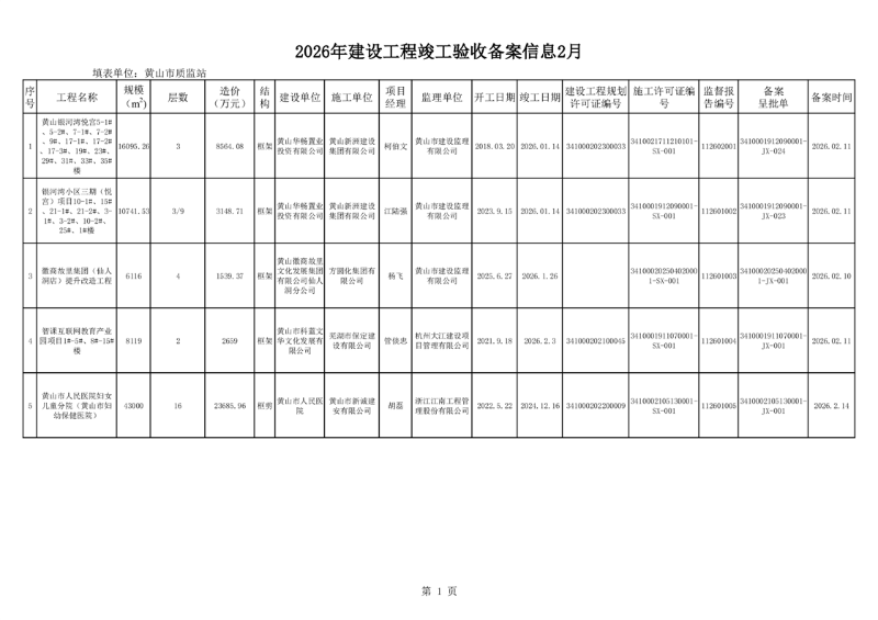 2026年建设工程竣工验收备案信息2月