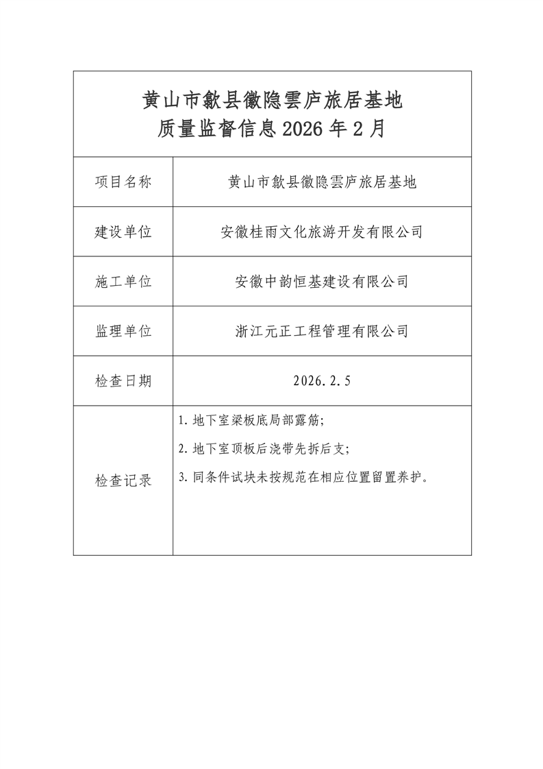黄山市歙县徽隐雲庐旅居基地质量监督信息-2026年2月