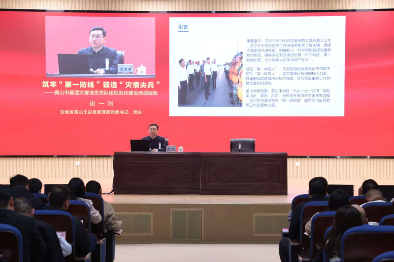 近日,黄山市应急管理局党委书记、局长谢一刚受邀在应急管理部2026年全国救灾救助业务暨灾害信息员师资视频培训班上作专题授课,系统介绍基层灾害信息员队伍规范化、专业化、精准化建设的创新实践与工作成效,为全国基层防灾减灾救灾工作提供可复制、可推广的黄山经验。