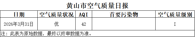 黄山市空气质量日报(2026年3月31日)