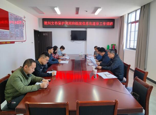 调研组一行先后参观了查档大厅、数字档案库房、徽州文书特藏室等。调研围绕档案学会发展、档案信息化建设、徽州文书抢救保护、档案编研及开放利用等进行了交流研讨。