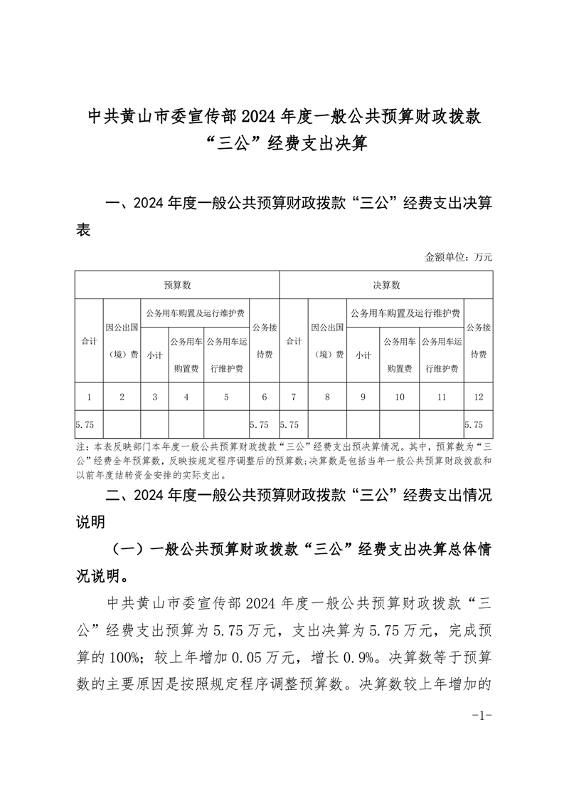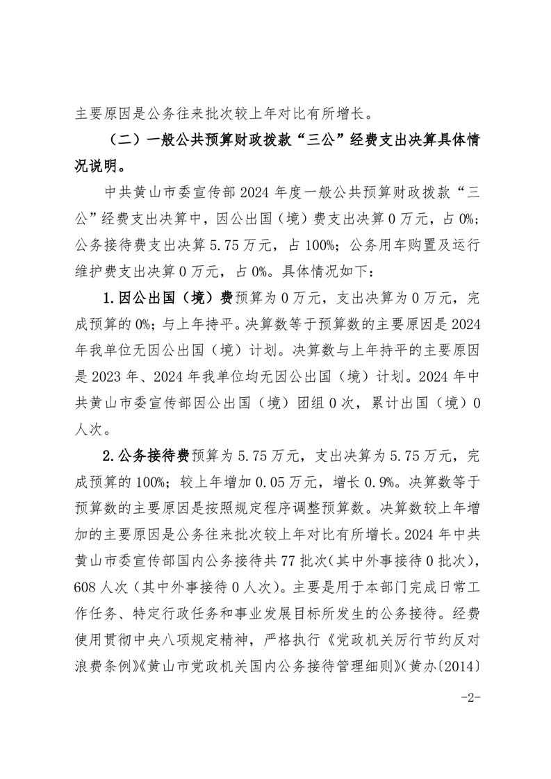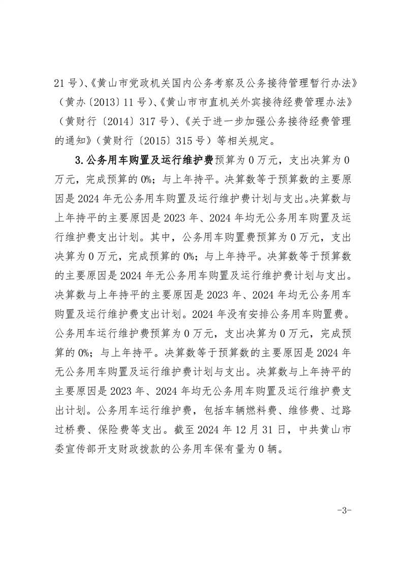 中共黄山市委宣传部2024年度一般公共预算财政拨款“三公”经费支出决算