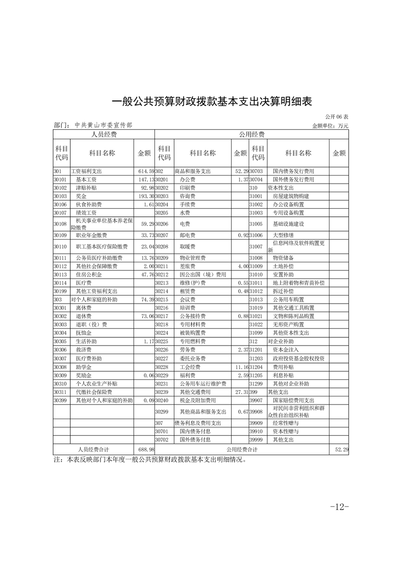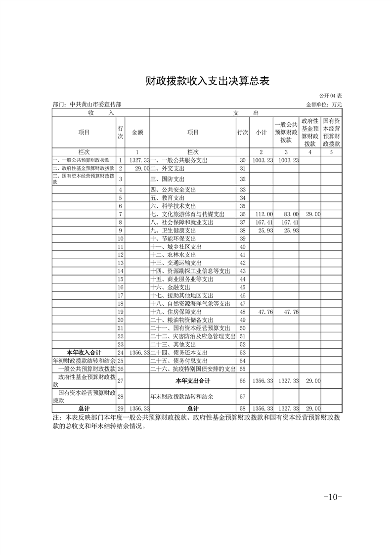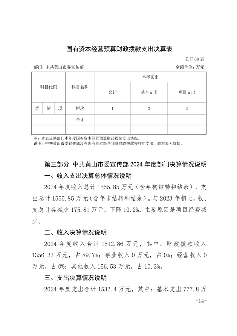 中共黄山市委宣传部2024年度部门决算