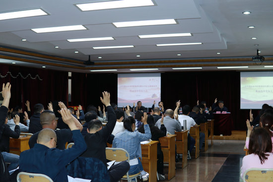 会议严格按照党章规定,坚持公平、公正的原则,全体党员举手表决一致通过大会选举办法、党总支委员候选人名单,以及监票人和计票人名单,采取无记名投票选举产生了中共黄山水务控股集团有限公司新一届党总支委员会委员。
