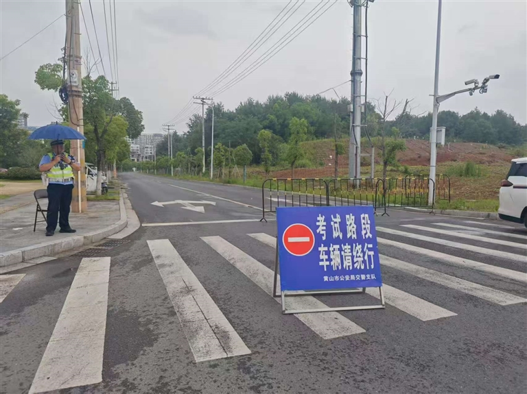 6月7日下午2时30分许,市公安局交警支队直属三大队民警辅警正在黄山高新区金鸡路和丹霞路交叉路口冒雨执勤。“今天是高考第一天,送考的车辆比较多,为了确保道路畅通,让考生能按时到达考场,每场次开考前,我们都是提前2个小时到岗指挥疏导交通。”一名执勤民警说,在屯溪一中考点周边,还有很多交警辅警积极引导送考车辆“即到即走”,多辆警车在考场周边随时待命,为考生做好各类应急处置工作。