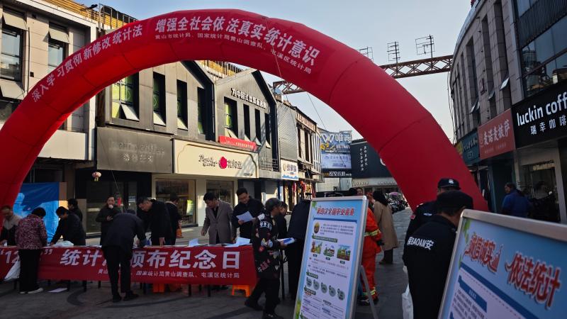 为弘扬宪法精神,进一步提高全社会依法真实统计意识,12月8日,黄山市统计局联合国家统计局黄山调查队、屯溪区统计局开展“深入学习贯彻新修改统计法 增强全社会依法真实统计意识”主题统计法治宣传活动。