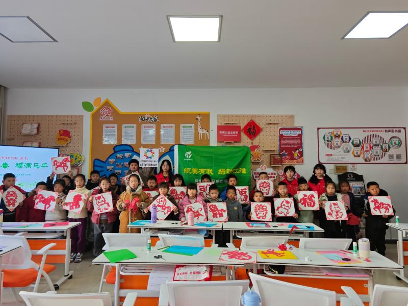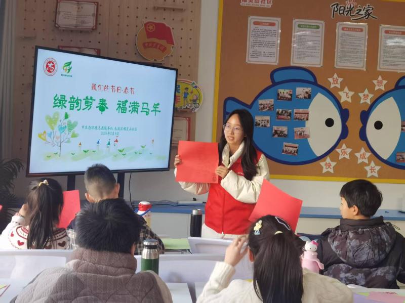 随后,志愿者指导孩子们开展剪纸创作,细致讲解了春字剪纸、生肖马、福字剪纸等不同剪纸样式的剪法。同时融入绿叶、小树等环保元素,引导孩子们发挥想象力,剪出了兼具新春韵味和环保寓意的剪纸作品。活动现场暖意融融、剪影翩跹,30余幅童心绘就的剪纸作品汇成浓浓的春节年味,彰显了中华优秀传统文化的时代活力,生动诠释了“人与自然和谐共生”的现代春节新风尚。