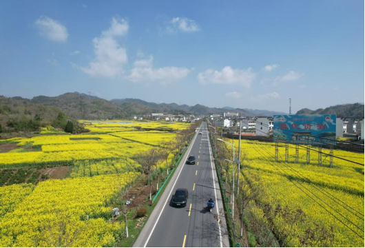 三月的风,轻拂过沉静的徽州大地,粉墙黛瓦间,桃花红、杏花白,次第晕染,仿佛水墨画悄然转作粉彩。而更为泼洒写意的,是一条条蜿蜒舒展的国省干线公路,如笔锋游走,串联起田野山间那一片片金灿灿的油菜花海。