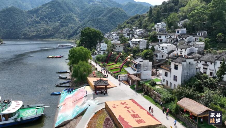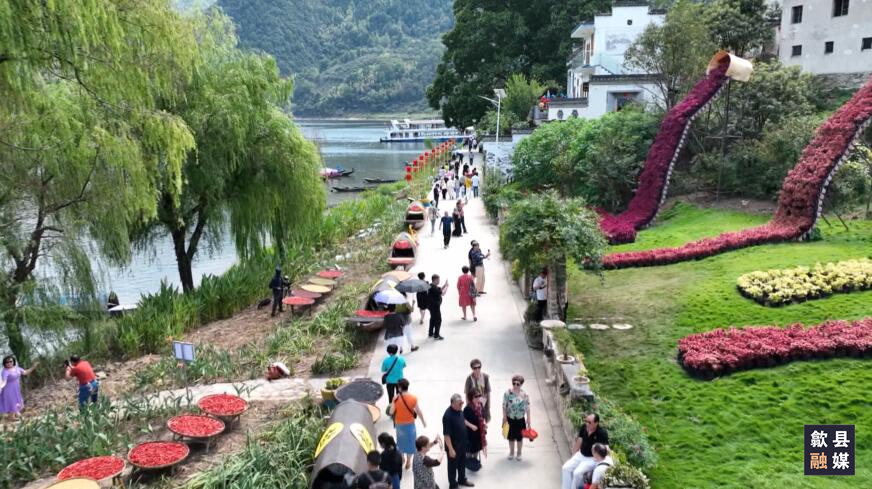 一幅幅绚丽多姿的晒秋图,与粉墙黛瓦的古村落、碧波荡漾的新安江交相辉映,新颖别致,美不胜收,吸引了不少市民和游客前来,与村民共同分享丰收的喜悦。